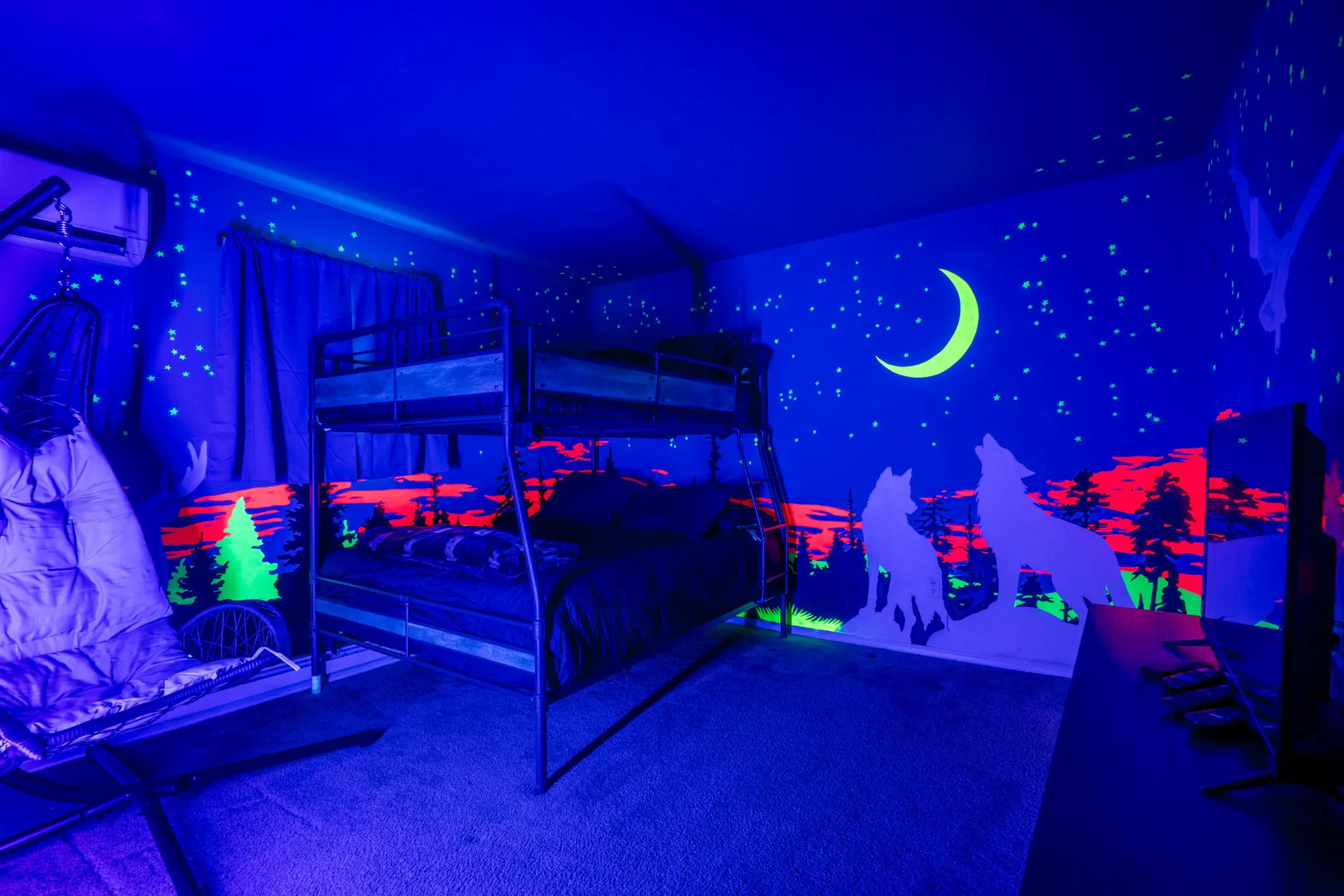• Nighttime black light forest room (fun for families with children, and adult-only groups!)